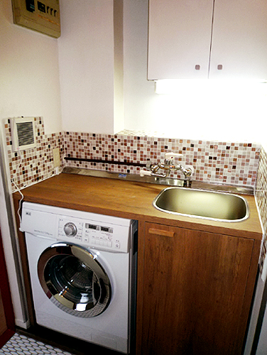 このお部屋には洗濯機置き場がありませんでした。洗濯機がないのは困るので、コンパクトなドラム式洗濯機を設置。