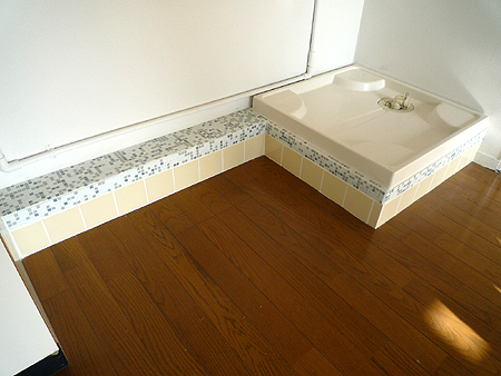 以前の浴室には古い浴槽が入っていました。学生さんに意見を効くと、浴槽はあまり必要ないとのこと…。それならばいっそ取ってしまおう!ということになりました^^浴室は浴槽を撤去しシンプルにシャワーのみ、機能的な空間にしました。明るいタイルを貼り、イメージを一新!これでシャワータイムも楽しくなります♪ |