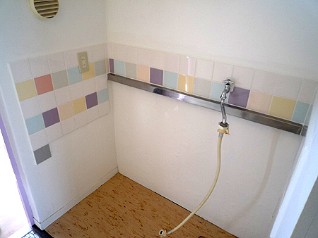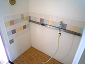 シャワールームやトイレなど水廻りのタイルも全部張替え。
