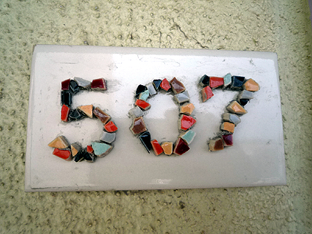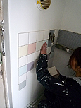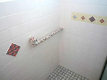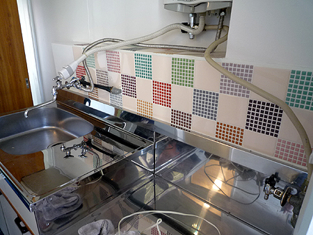| 配水管にも細かいタイルでデザインを施しました。 |