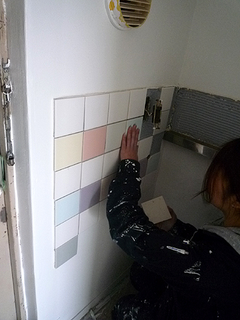 タイルは1枚1枚学生さんが配色を考えながら貼っていきました。 |